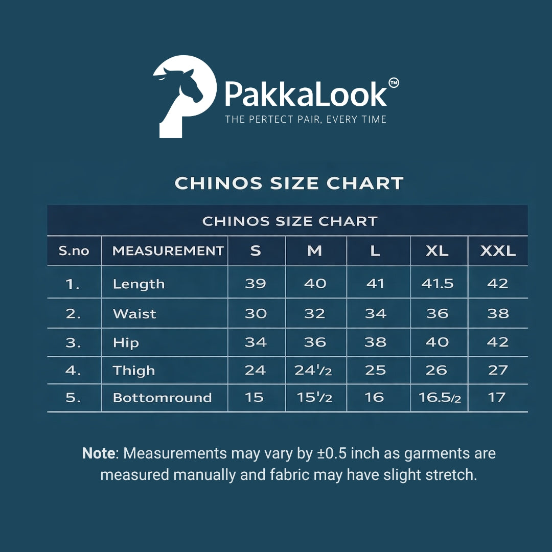 Made from premium cotton satin fabric (350 GSM, 100% cotton), these chinos offer a rich, smooth finish with excellent durability. The high GSM fabric ensures a structured look while remaining breathable for all-day wear. Designed with 3–4% stretch elasticity, these chinos provide enhanced mobility without losing their shape.