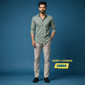 This combo includes a Green & Black Stripe Cotton Satin Shirt and Off-White Cotton Satin Chinos, designed to complement each other perfectly for office wear, casual meetings, and evening outings.