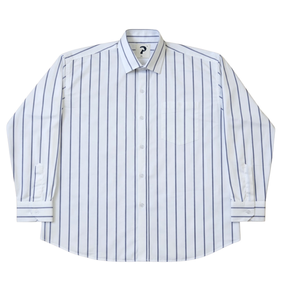 Men’s White Black Stripe Cotton Satin Shirt | 100% Cotton | Round Neck with Collar | Smart Casual Wear
